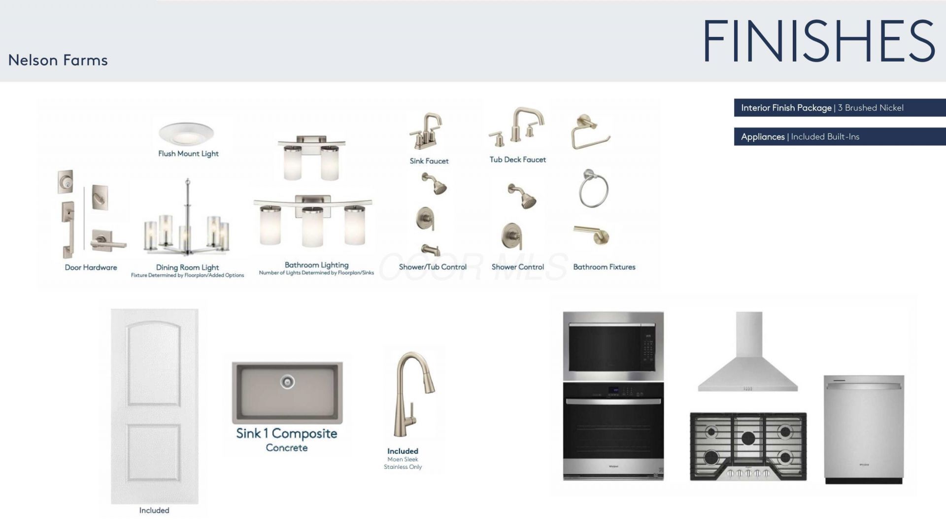 ESTIMATED COMPLETION BY THE END OF SEPTEMBER. This is an impressive new 5 bed 4 bath home in Nelson Farms. The kitchen has built in stainless gas Whirlpool appliances, landen arid maple cabinets with a convenience package and 42' uppers, miami vena quartz counters, finish line matte white tile backsplash, an upgraded concrete composite single bowl sink with a sleek moen faucet, a spacious island with space for seating and a large walk in pantry for storage. The owners suite has a huge walk-in closet and a private bath with double comfort height vanities, white zeus quartz counters, a linen closet, enclosed toilet area, balans white tile walk in shower and a separate tub. An add'l 3 beds with walk in closets, 1 with its own private bath, 1 Jack-n-Jill bath and a conveniently located laundry with elkins white purestyle cabinets and a utility sink. An eating space for casual dining, two story great room with tons of windows and a beautiful gas fireplace/driftwood surround/upgraded white mantel, multi use flex space with french doors, a butler pantry leading to a formal dining space, 1st floor guest suite, full bath with a walk in shower, a light filled sunroom, planning center a great space to help keep everything organized and a 3 car sideload garage with storage space. A full 9' unfinished basement with rough in plumbing and an egress window offering endless possibilities. Gorgeous rail and wrought iron spindles. Brushed nickel finishes and fixtures. Luxury vinyl tile flooring throughout most of the main level. Smart home features included. A gorgeous lot, backing to reserve space. A short drive to everyday amenities like banking, shopping, medical, dining and more. Interior photos are from a model, not the actual home.